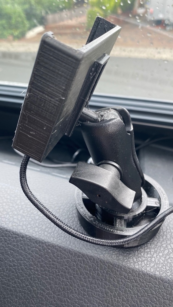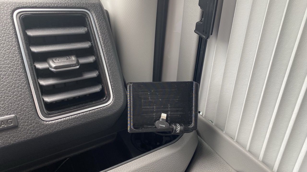 • Hallo Maxia Van Fahrer(in), ich habe einen 3D Drucker überredet mir einem Halter für mein Handy zu drucken. Der passt auf der Fahrer- und Beifahrerseite in das Getränkefach im Armaturenbrett. Hier das entsprechende Bild