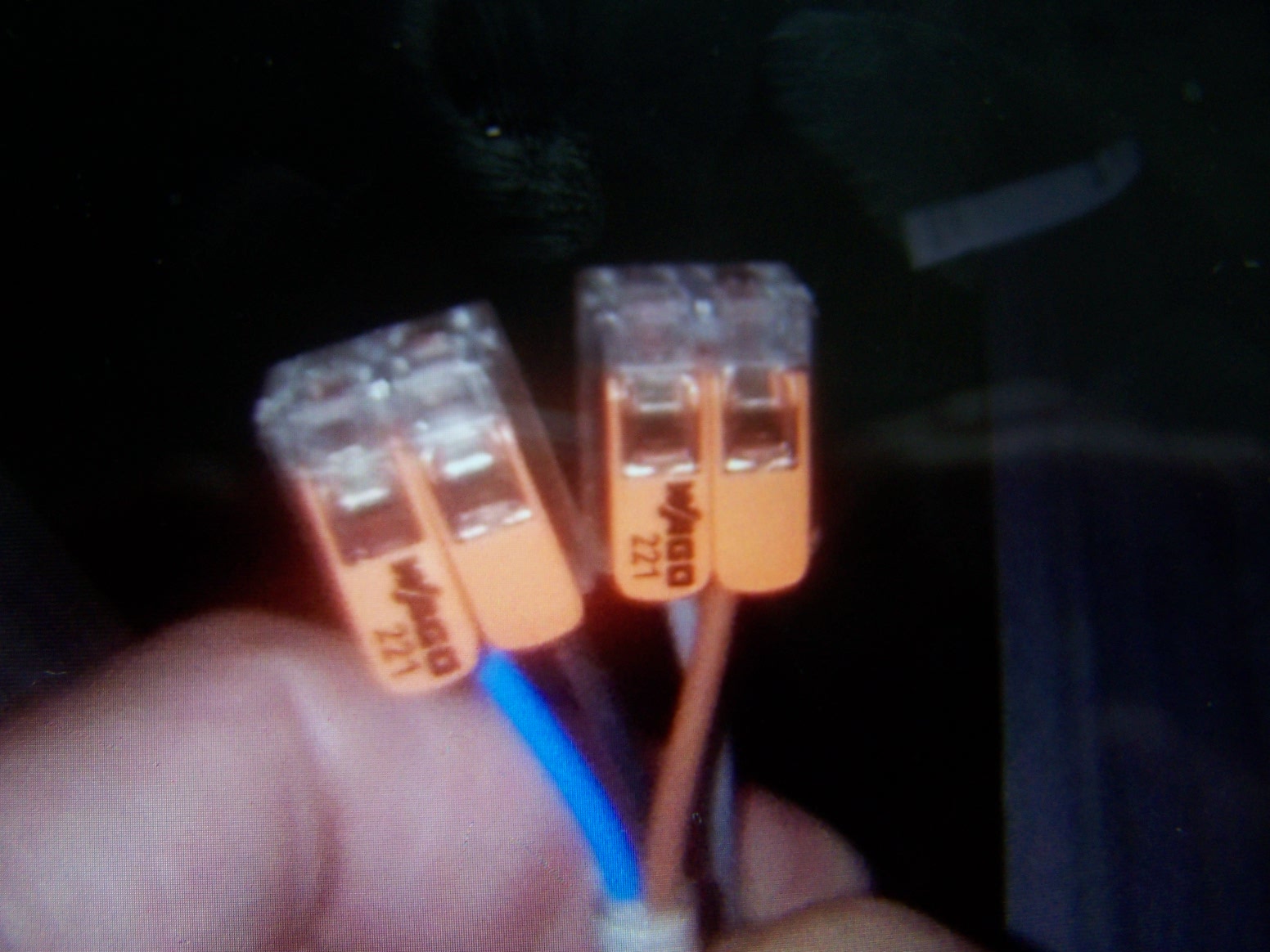 Aber unter der Sitzbank beim Wassertank kommen 2 Kabel an ( einmal braun / grau und einmal blau/schwarz.