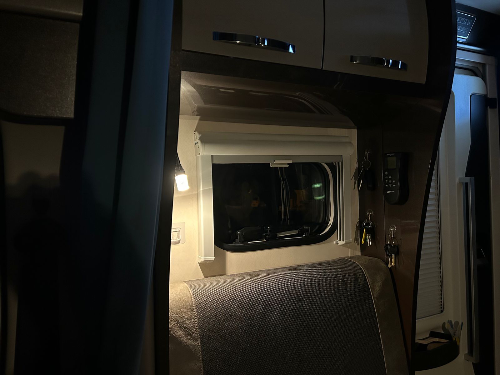 Dabei haben wir einen Alkoven gesehen, der den TV an der Beifahrerwand hinter dem Sitz hängen hat. Nun kam uns die Idee, dass das bei uns auch so gehen könnte.