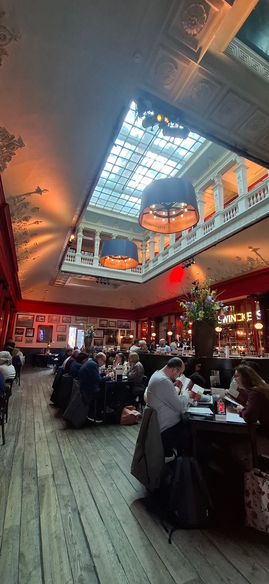 Leider waren wir zur falschen Uhrzeit am Anleger und mussten auf unser Boot ( dann doch ein geschlossenes) warten. Das Warten haben wir uns im Winkel van Sinkel auf der anderen Grachtseite verschönt bei einem lecker Bierchen. Das Swinkel genannte Restaurant ist im ehemaligen Kaufhaus Winkel van Sinkel, dem ersten und ältesten in Utrecht, eröffnet 1836. Das Swinkel bietet neben den 95 (!) Biersorten (davon 2 Dutzend vom Fass) auch smakelijk Eeten an. Man könnte also versucht sein, die Bootstour sausen zu lassen und sich gepflegt einen auf die Lampe zu gießen…