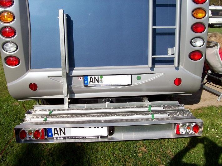 wenn die Leuchten nicht mehr als 40 cm von den Außenkanten des Fahrzeugs entfernt sind ist das okay. Werden "normale" PKW- Fahrradträger auf der AHK hinter einem Womo montiert, so ist der Abstand größer und das ist nicht zulässig. Es gibt spezielle Fahrradträger mit ausziehbarer Leuchteneinheit.