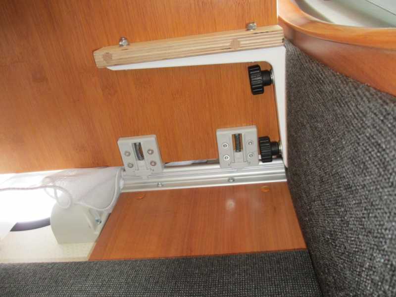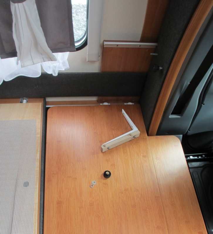 - Tischfixierung mit zwei Stockschrauben mit Rändelmuttern und ein Tablarwinkel (Kosten ca. CHF 20.-).