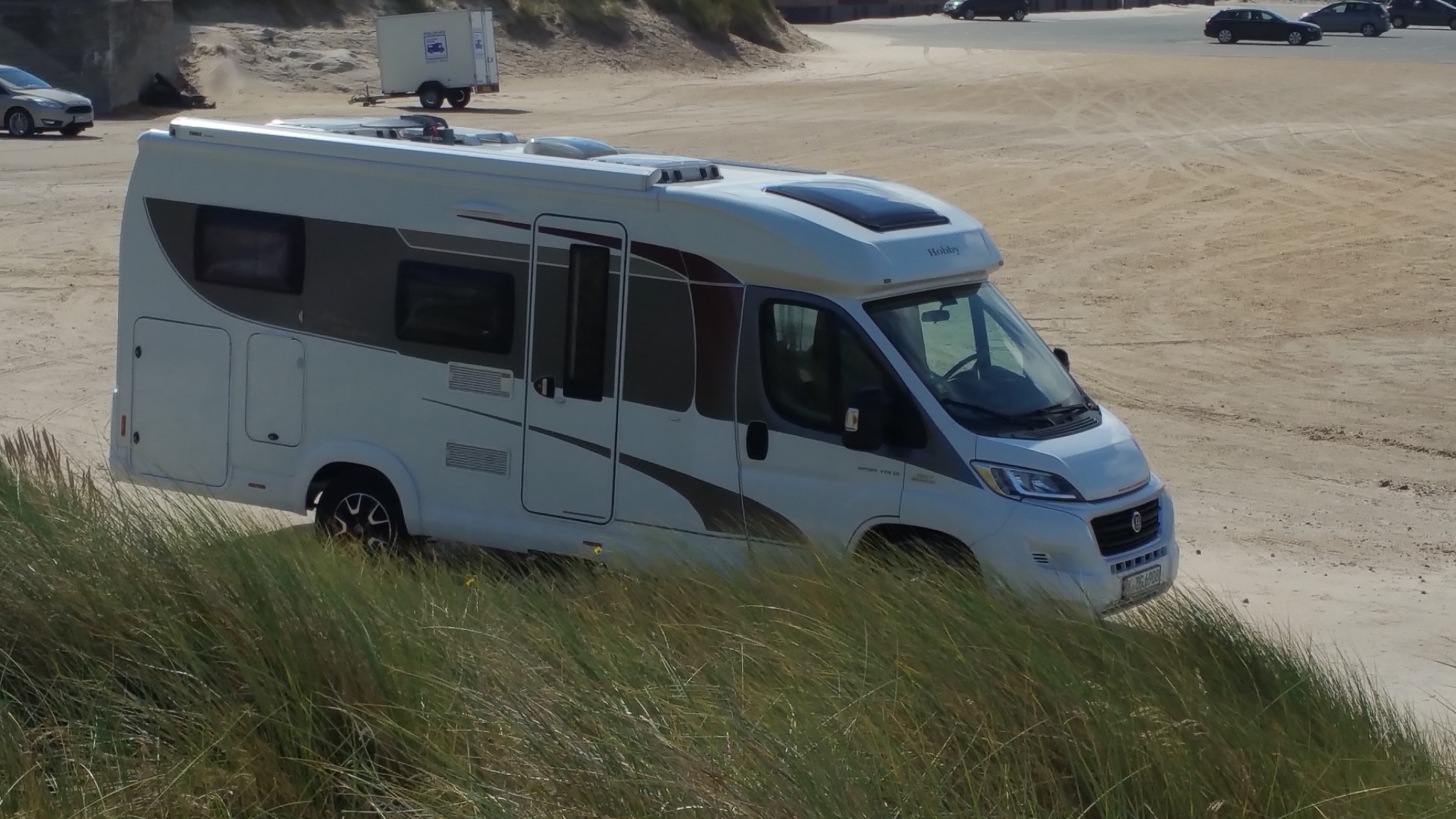Dann ging die Suche los.....Budget maximal 50 Tausend mit voller Ausstattung, Discounter Mobil neu und Zubehör anbauen lassen, oder gebrauchtes , gut ausgestattetes Wohnmobil? Wir haben fast 2000 km gefahren, Privatleute und Händler abgeklappert,viel Schrott oder Betrugsversuche erlebt und hatten dann bei einem Wohnmobil Händler auf unser AHA Gefühl. Hobby V65 GE .... ansehen, 20 Minuten drin verbracht...Whow. Aber leider war die Kiste Neu und außerhalb unseres Budgets.....jedenfalls wenn noch ein Radträger, Sat, Solar usw dran sollen. Außerdem war das Fahrzeug selbst spärlich ausgestattet. Das war es dann und meine Frau (ich auch) waren der Meinung, das ein weitersuchen verschenkte Zeit ist.....entweder den in Gebraucht, oder keinen. Also, warten, Urlaub in Dänemark gebucht (nette Holzhütte am Fjord), und sich damit abgefunden, das es vor Ende 2017 wohl kein Wohnmobil gibt.