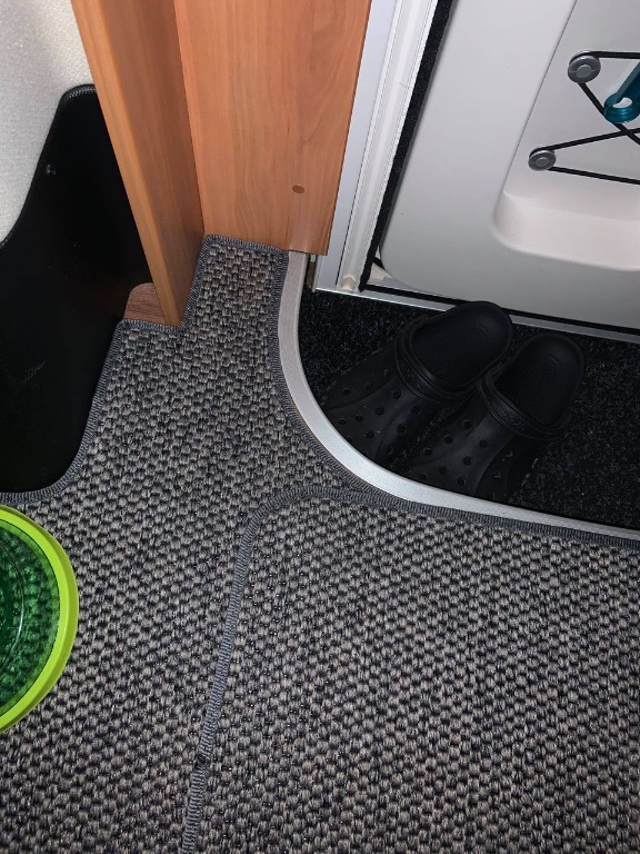 Da kann man mal wischen und gut ausschütteln. Aber Zuhause ist ja auch alles fest. Also warum nicht? Da ich aber den Doppelboden habe und an die Staufächer und Versorgung ran muss, ist das keine Variante für mich.