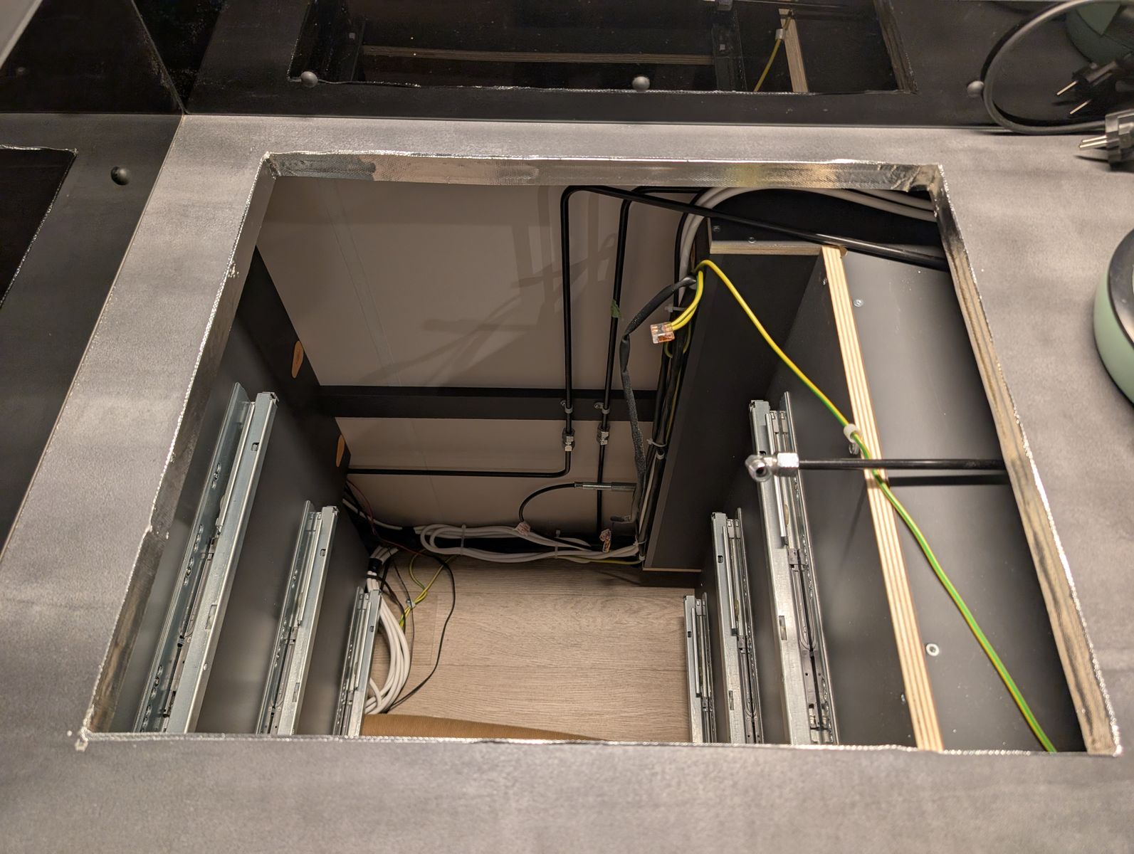 Etwas knifflig wurde es nur bei der Durchführung der Kabel von innen nach außen. Das Bedienteil habe ich in den "Schrank" unter dem Kühlschrank verbaut.