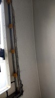 4. Wichtig: Der Hobby 600 von 1995 hat eine recht starke Krümmung und die Dometic S4 sind eigentlich für gerade Wände gedacht. Beim Verschrauben ziehen sie sich aber gut in Form, sodass sie nachher nahezu plan an der Wand anliegen.