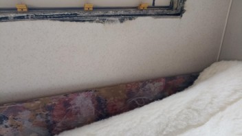 2. Entfernen aller Klebereste und des Schimmels auf der Innenseite (mit Schimmelentferner einige Tage vorher und dann nochmals mit Verdünnung am Tag des Ausbaus, um wirklich alles weg zu bekommen).