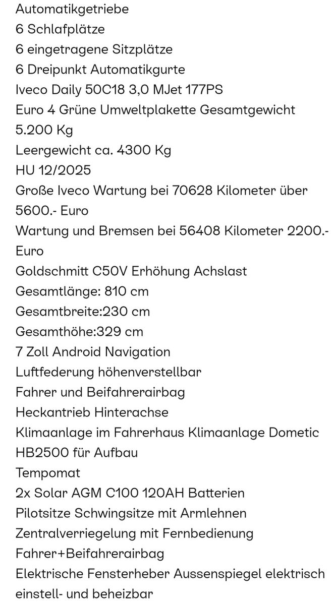 Laut Verkäufer hat er die Sphinx beim Verkauf seines Wohnmobils (180.000€) privat "in Zahlung" genommen. Eine Durchsicht beim Iveco Händler hat angeblich ergeben, dass die Sphinx, für das Alter und gelaufenen Kilometer, in sehr gutem Zustand sei (Aussage Verkäufer: "sonst hätte ich das Womo ja nicht drangenommen"